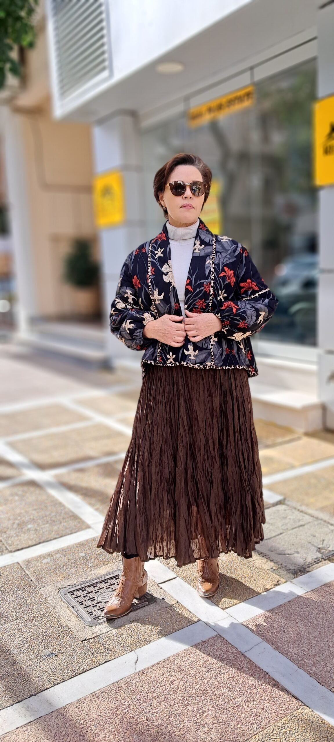 Γυναικείο μπουφάν ανοιξιάτικο με λουλούδια. Χωρίς κουμπώματα. Ένα νούμερο. Καλύπτει έως XL. Διαθέσιμο σε δύο χρώματα.
