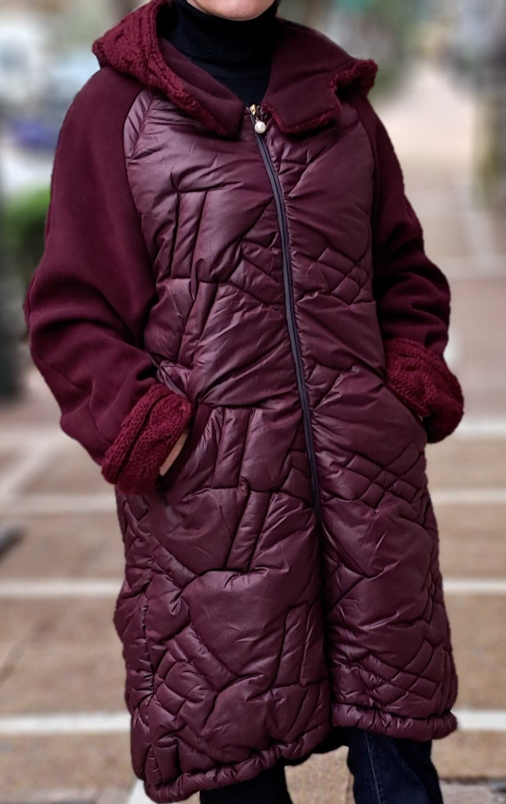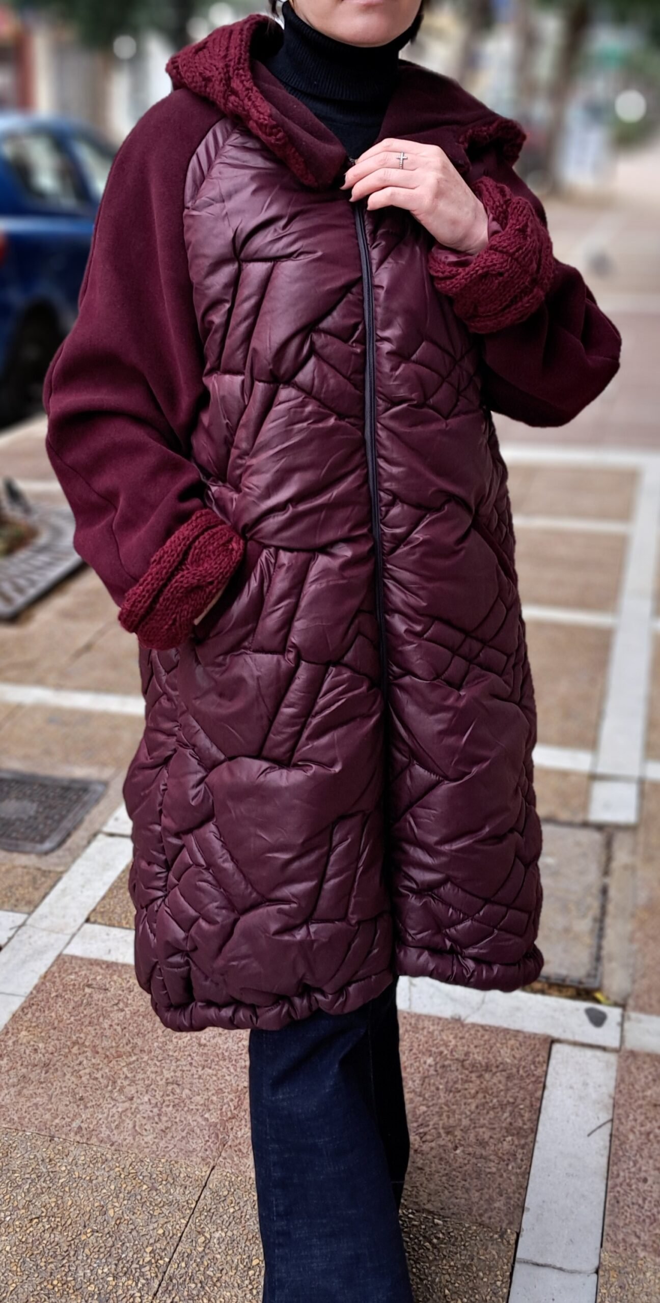 Παλτό- μπουφάν μπορντό με κουκούλα